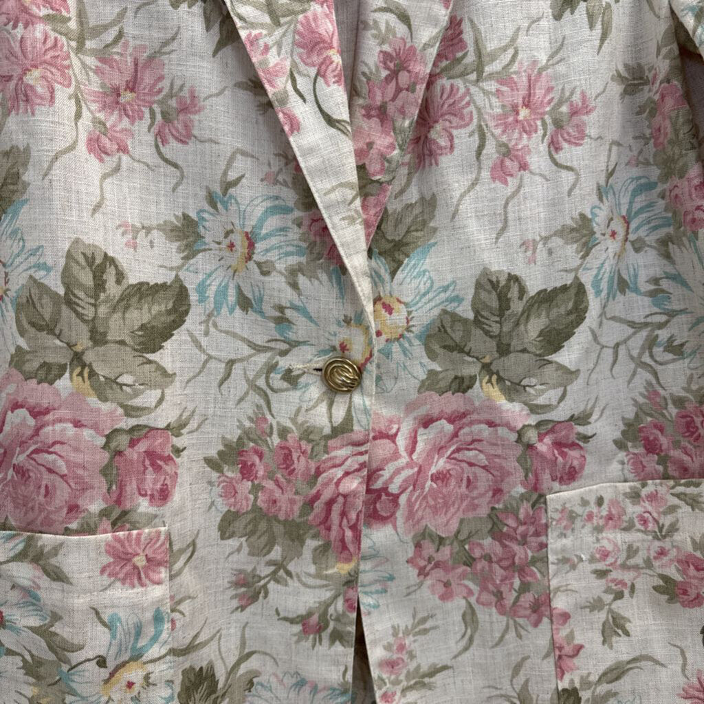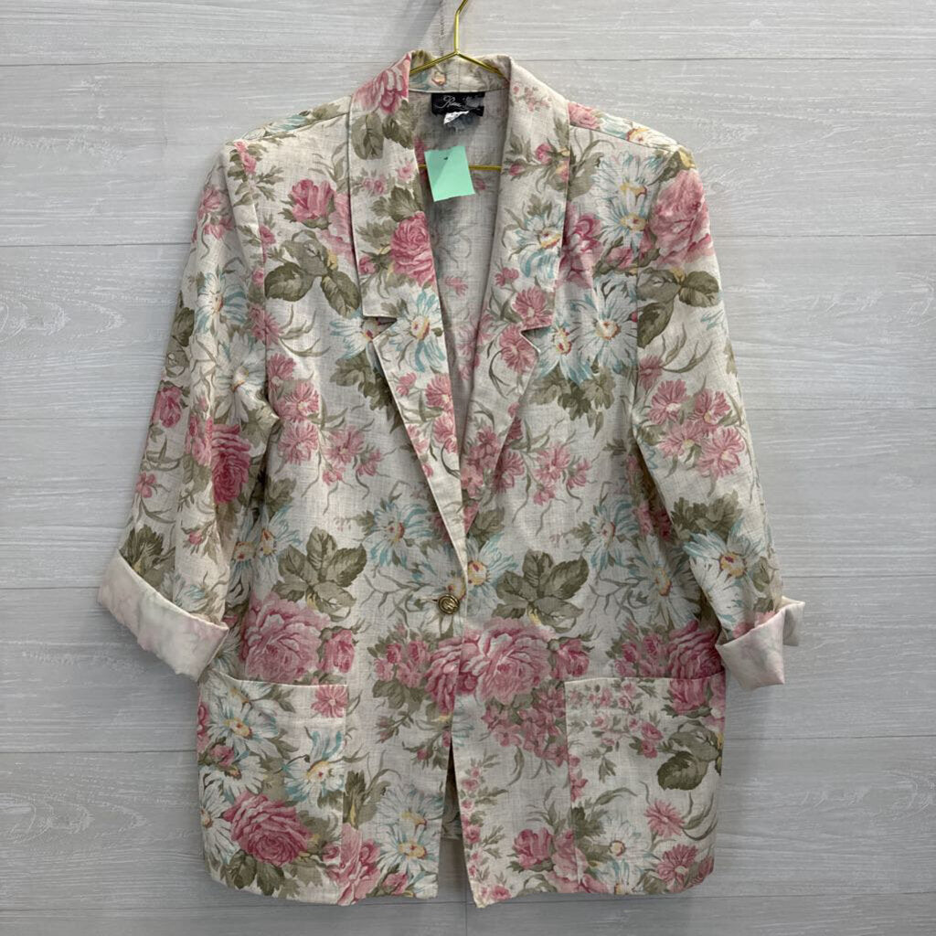 Vintage Radcliffe Cream/ Multi Floral Print Linen Blend Blazer Jacket 14