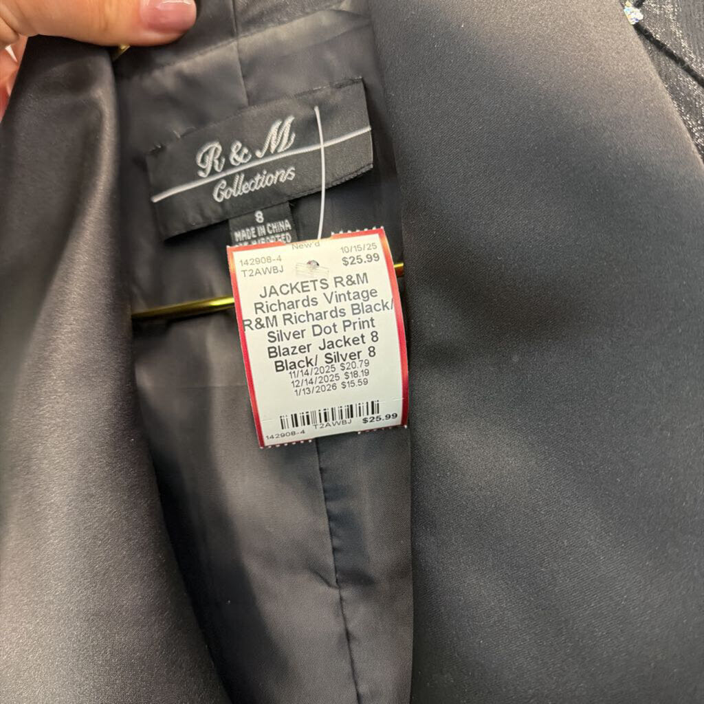 Vintage R&M Richards Black/ Silver Dot Print Blazer Jacket 8