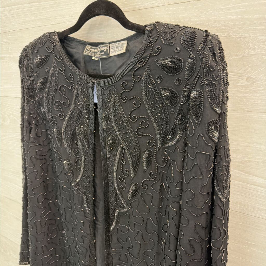 Vintage Royal Feelings Black Beaded Sequin Jacket Top Medium