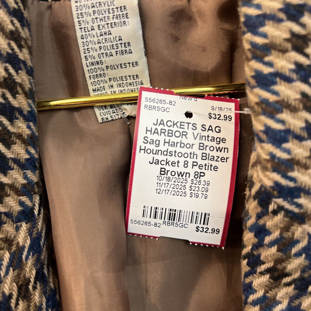 Vintage Sag Harbor Brown Houndstooth Blazer Jacket 8 Petite