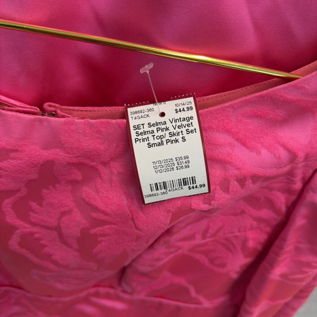 Vintage Selma Pink Velvet Print Top/ Skirt Set Small