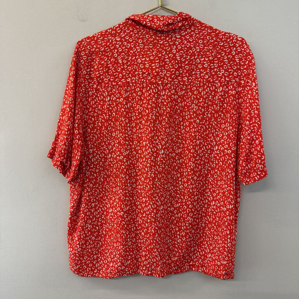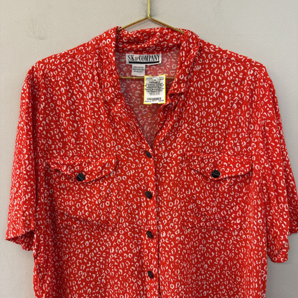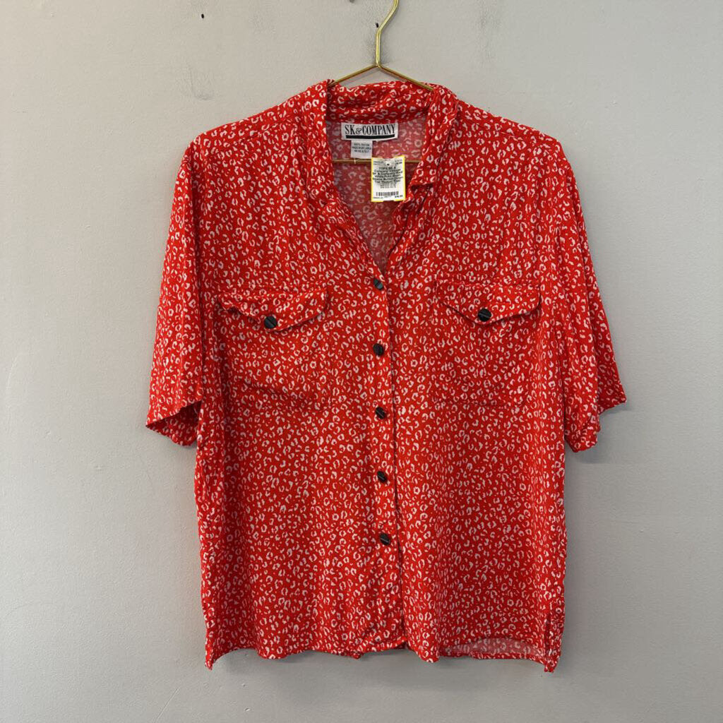 Vintage SK & Company Red/ White Print Short Sleeve Button Down Top Medium