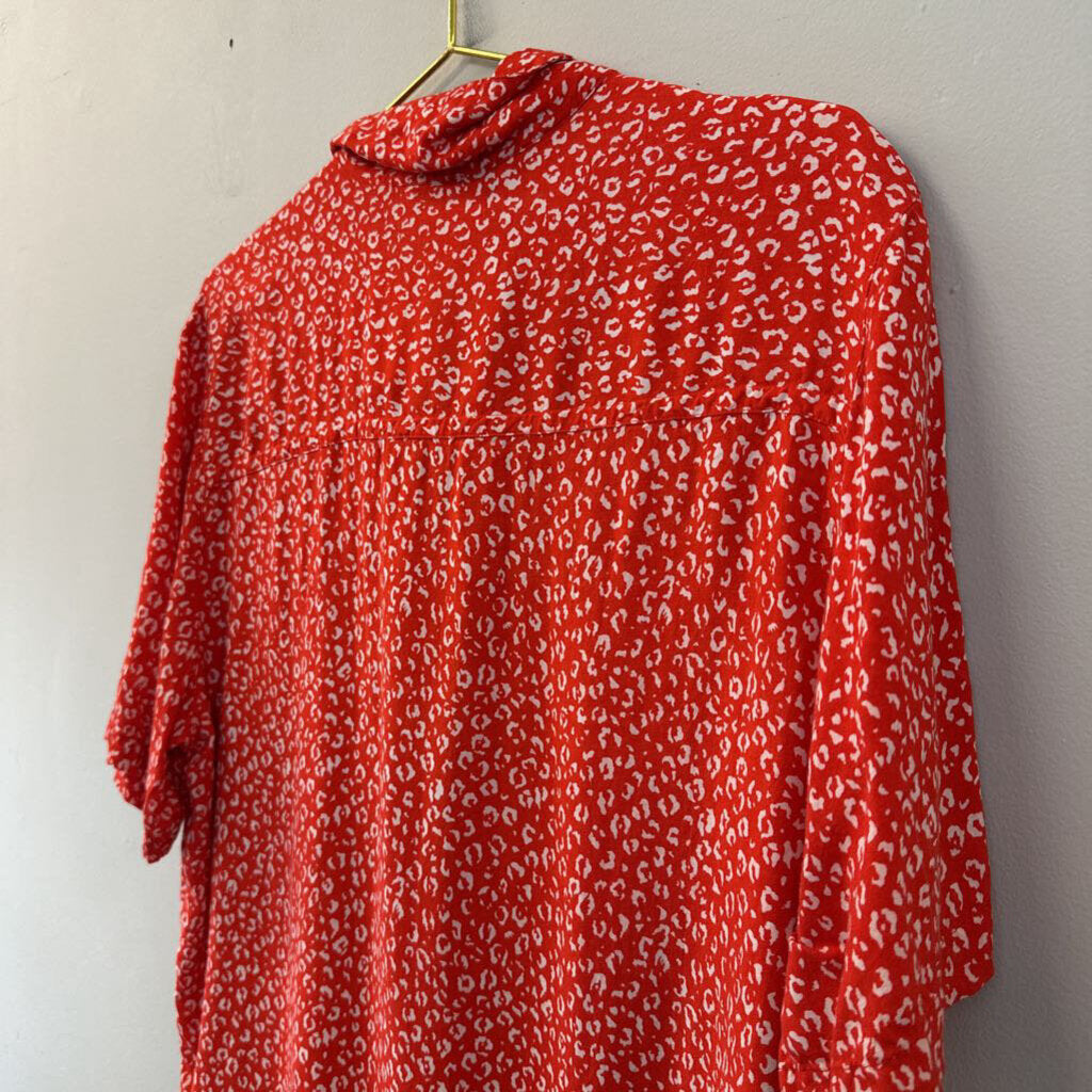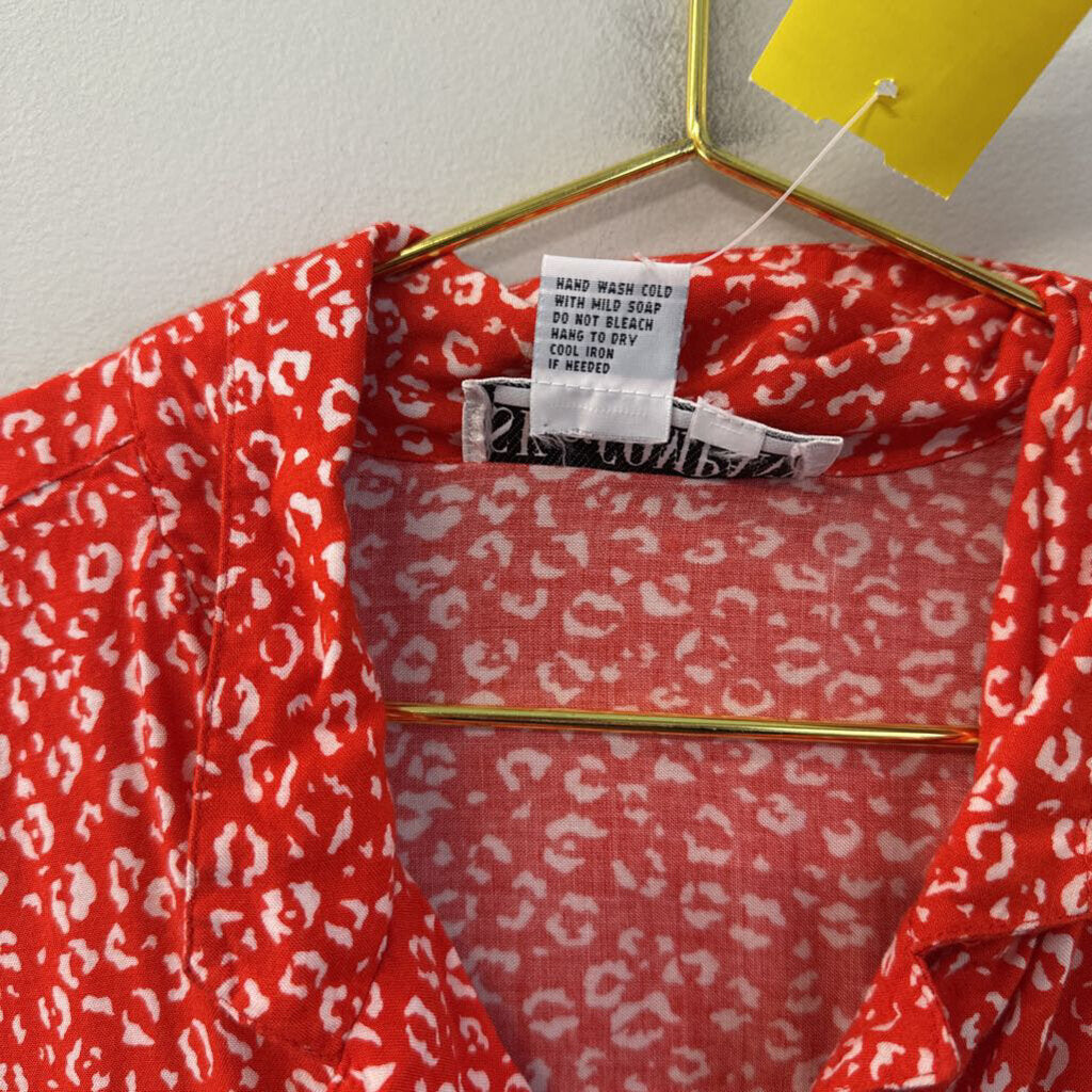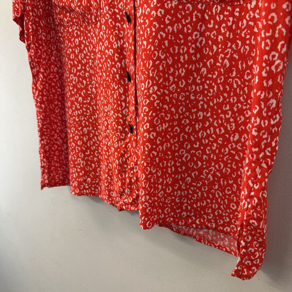 Vintage SK & Company Red/ White Print Short Sleeve Button Down Top Medium