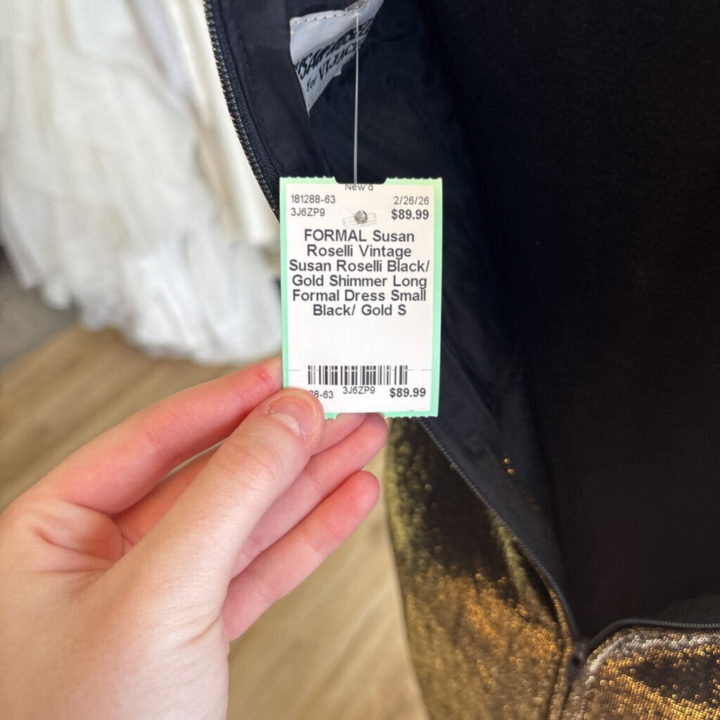 Vintage Susan Roselli Black/ Gold Shimmer Long Formal Dress Small