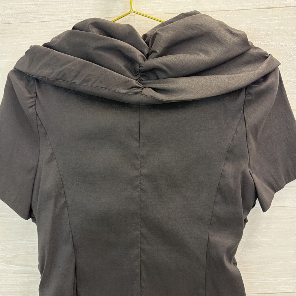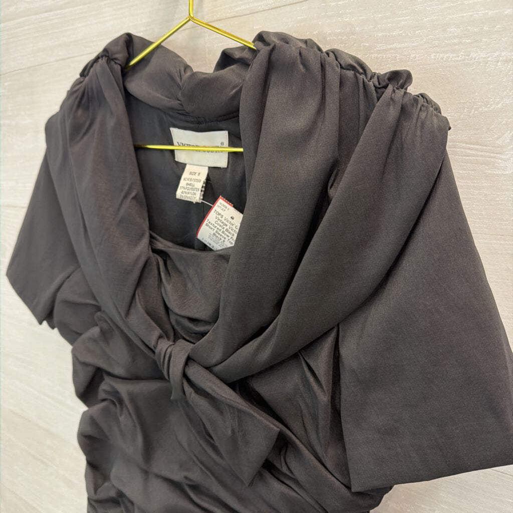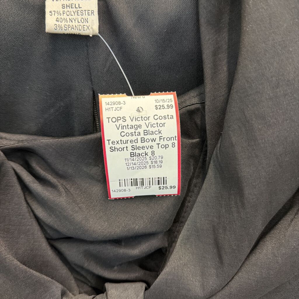 Vintage Victor Costa Black Textured Bow Front Short Sleeve Top 8
