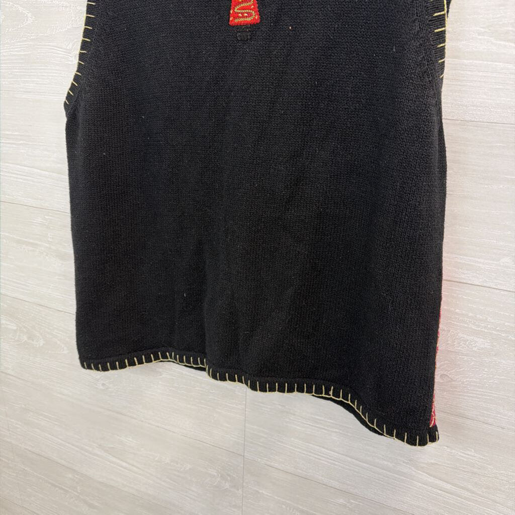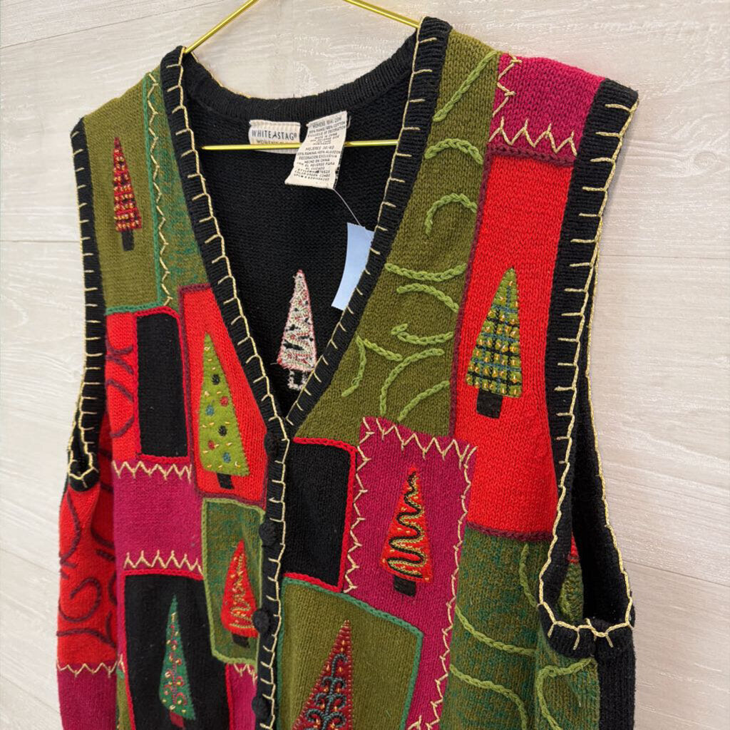 Vintage White Stag Black/ Multi Christmas Tree Patchwork Sweater Vest 18W/ 20W