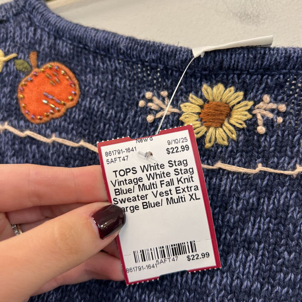 Vintage White Stag Blue/ Multi Fall Knit Sweater Vest Extra Large