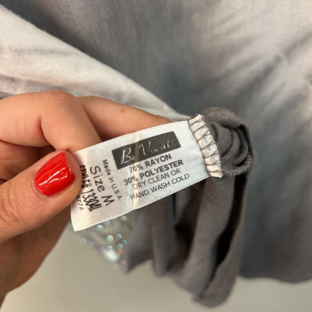 Vocal Grey Tie Dye Embellished Long Sleeve Top Medium