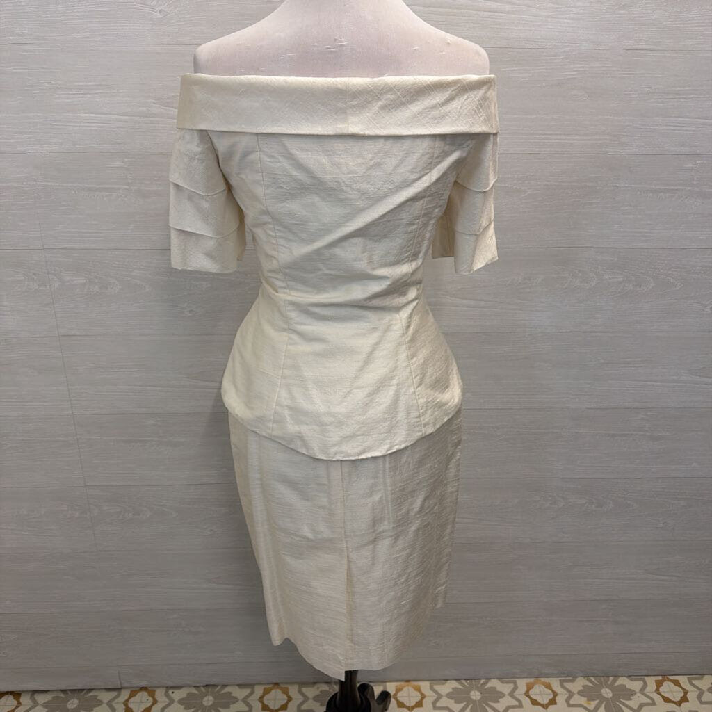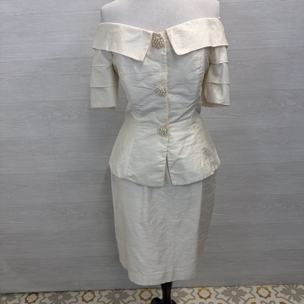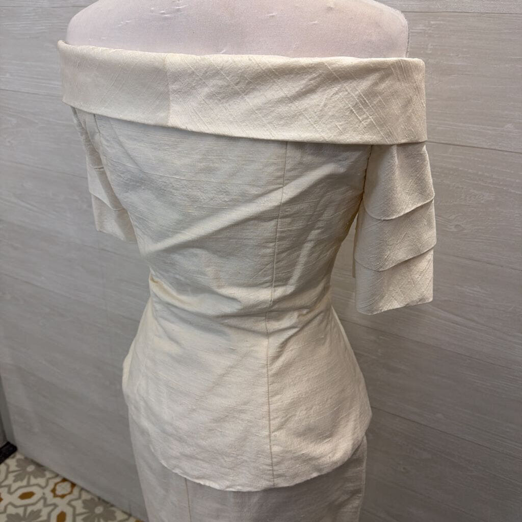 Watters and Watters Ivory 100% Silk Off Shoulder Top/ Midi Skirt Formal Set 10