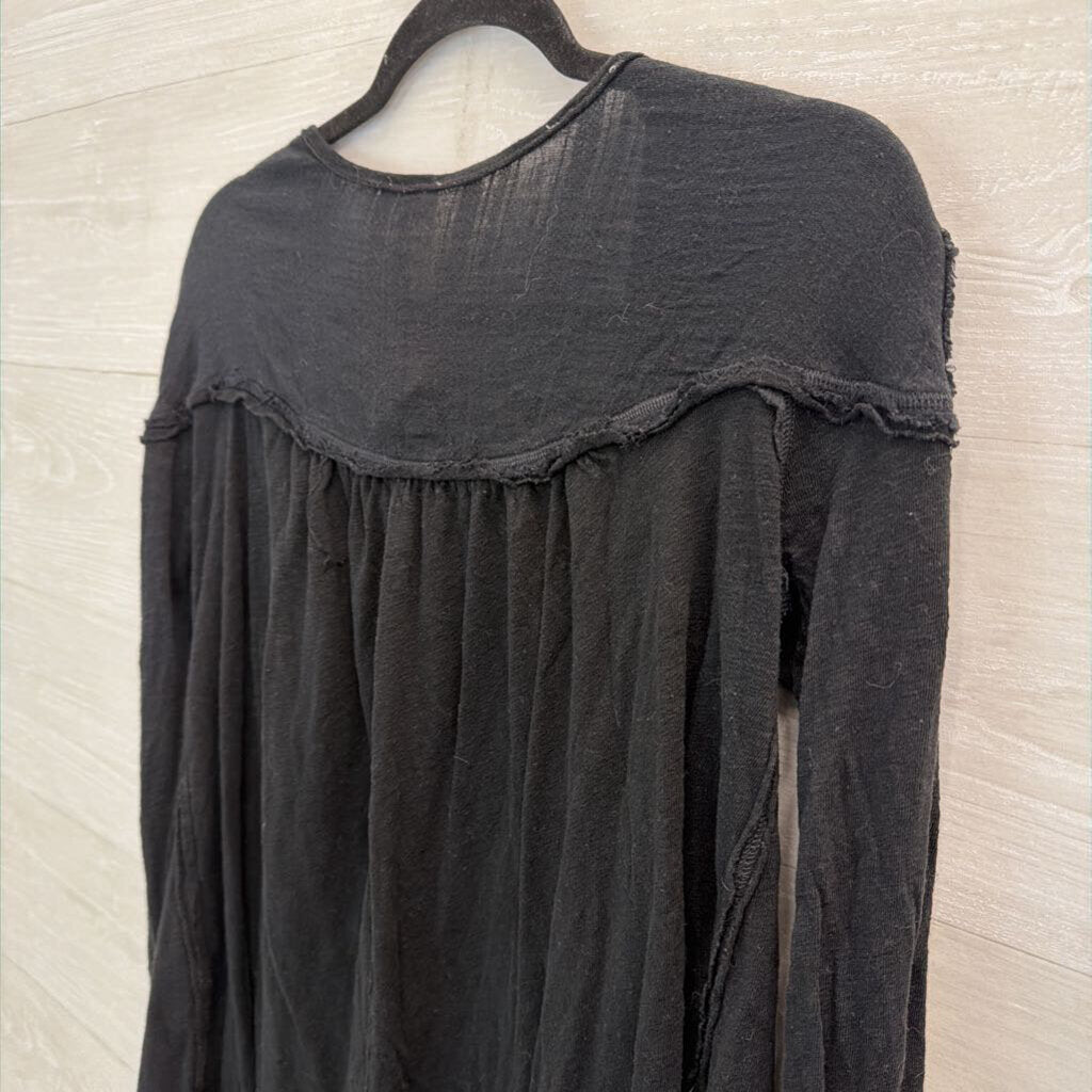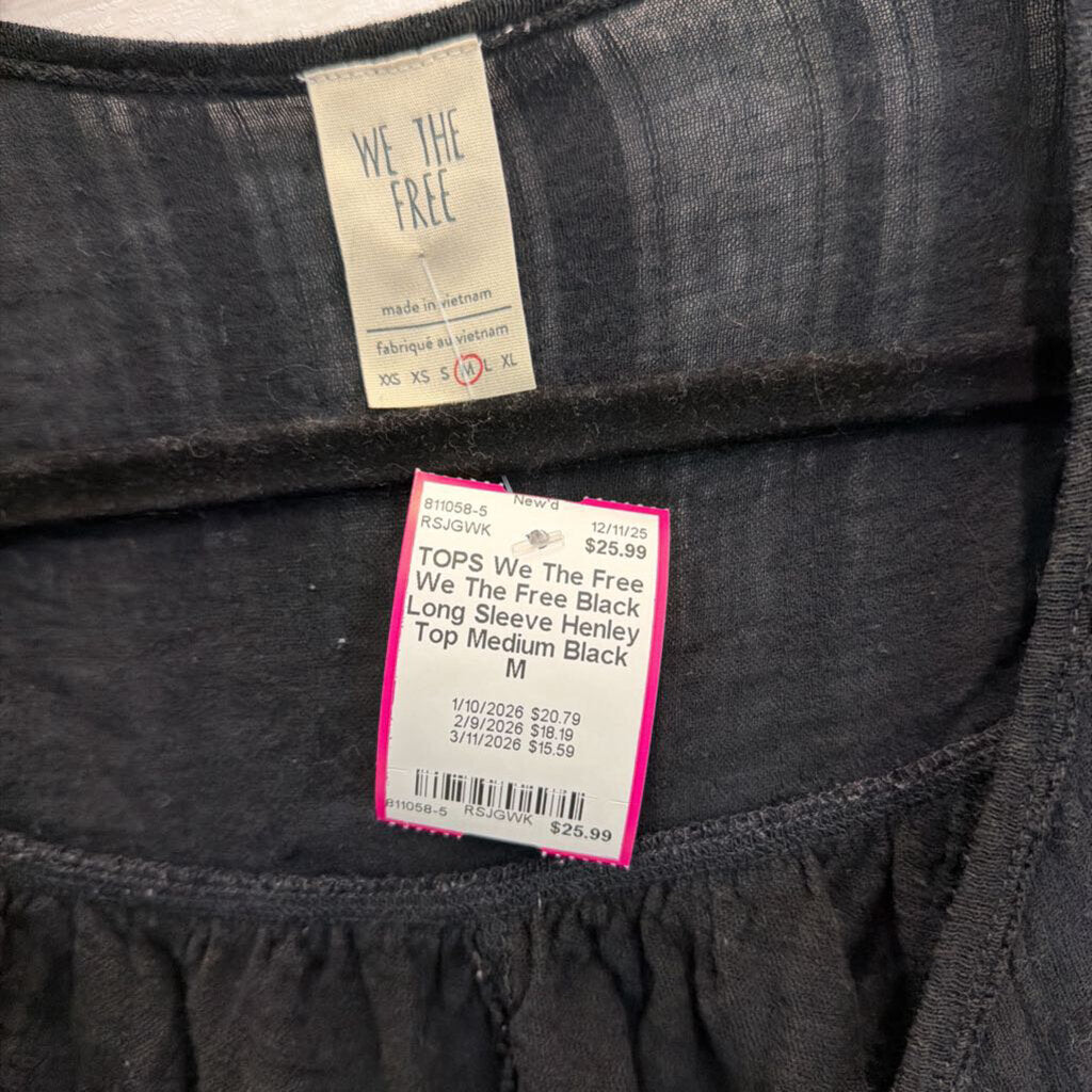 We The Free Black Long Sleeve Henley Top Medium