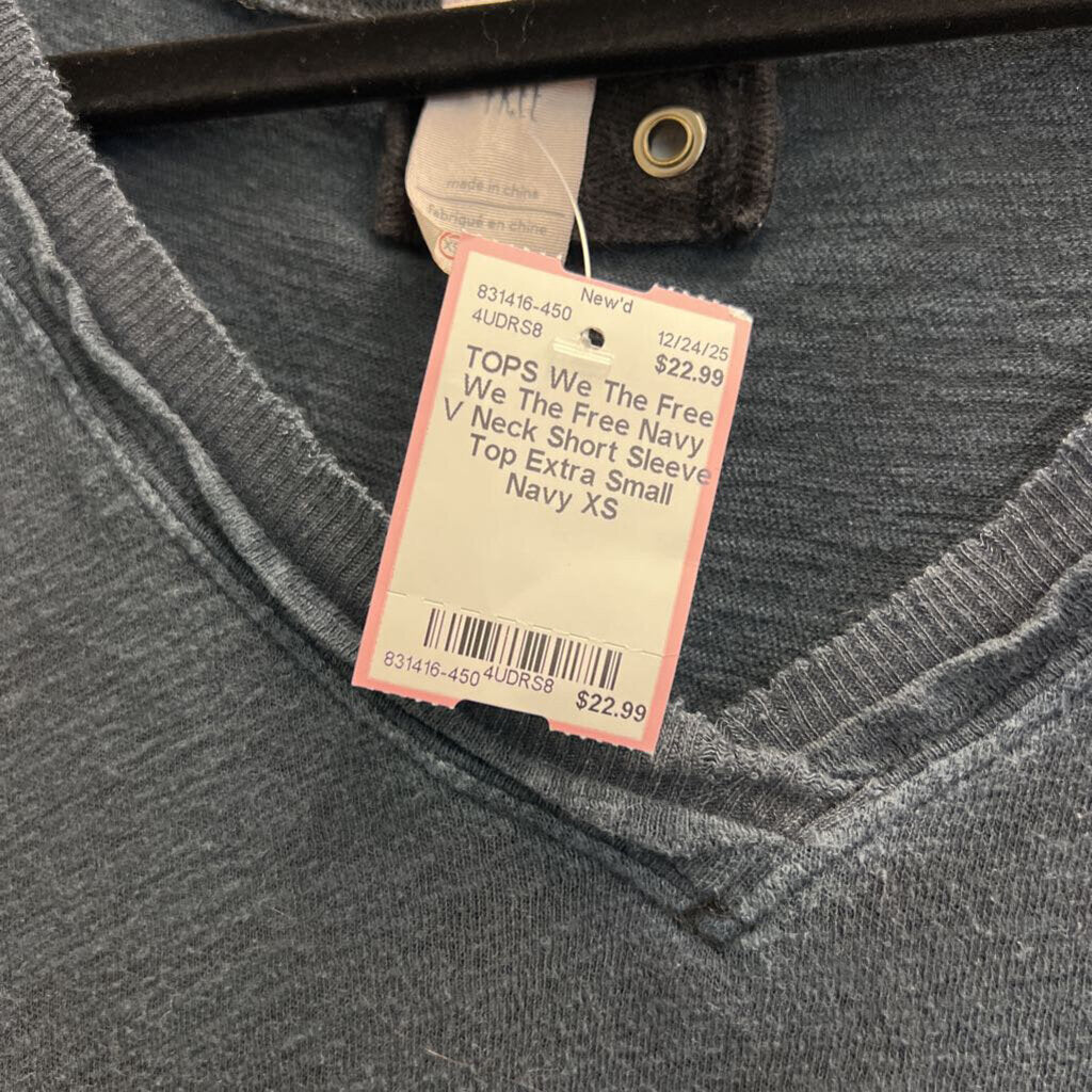We The Free Navy V Neck Short Sleeve Top Extra Small