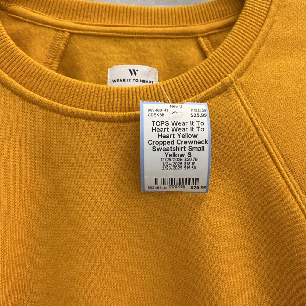 Wear It To Heart Yellow Cropped Crewneck Sweatshirt Small