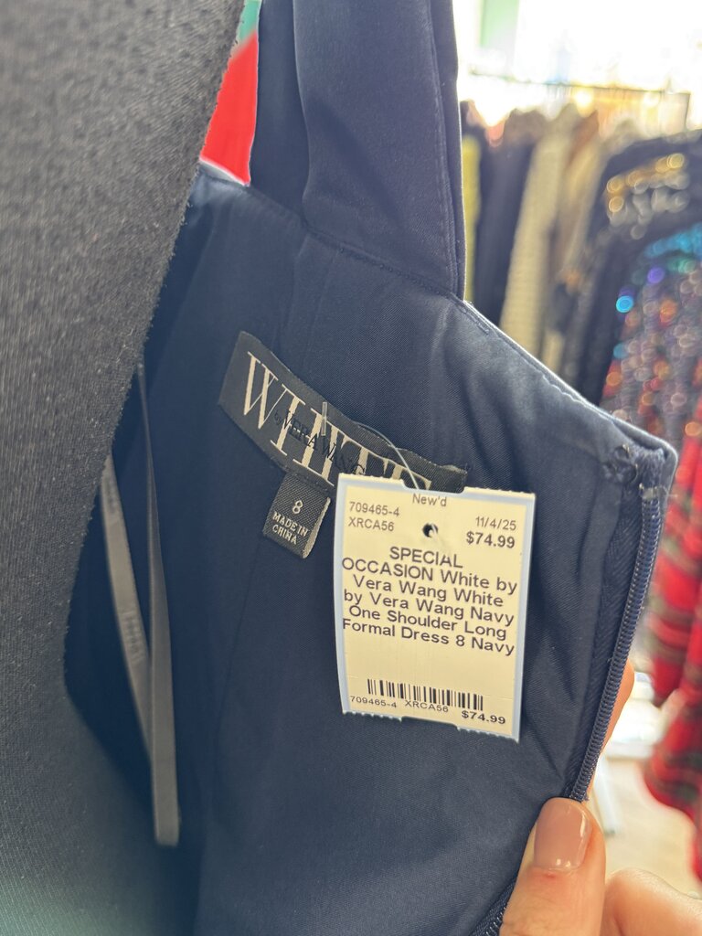 White by Vera Wang Navy One Shoulder Long Formal Dress 8