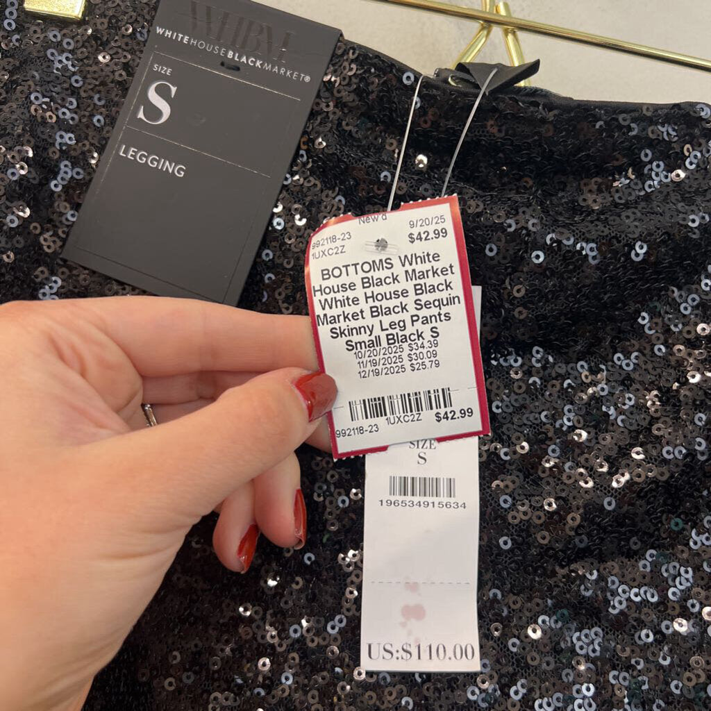 White House Black Market Black Sequin Skinny Leg Pants Small