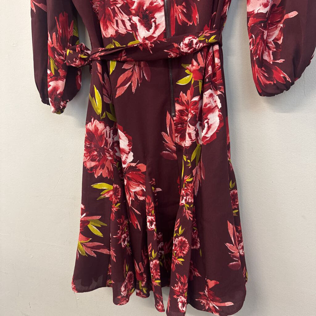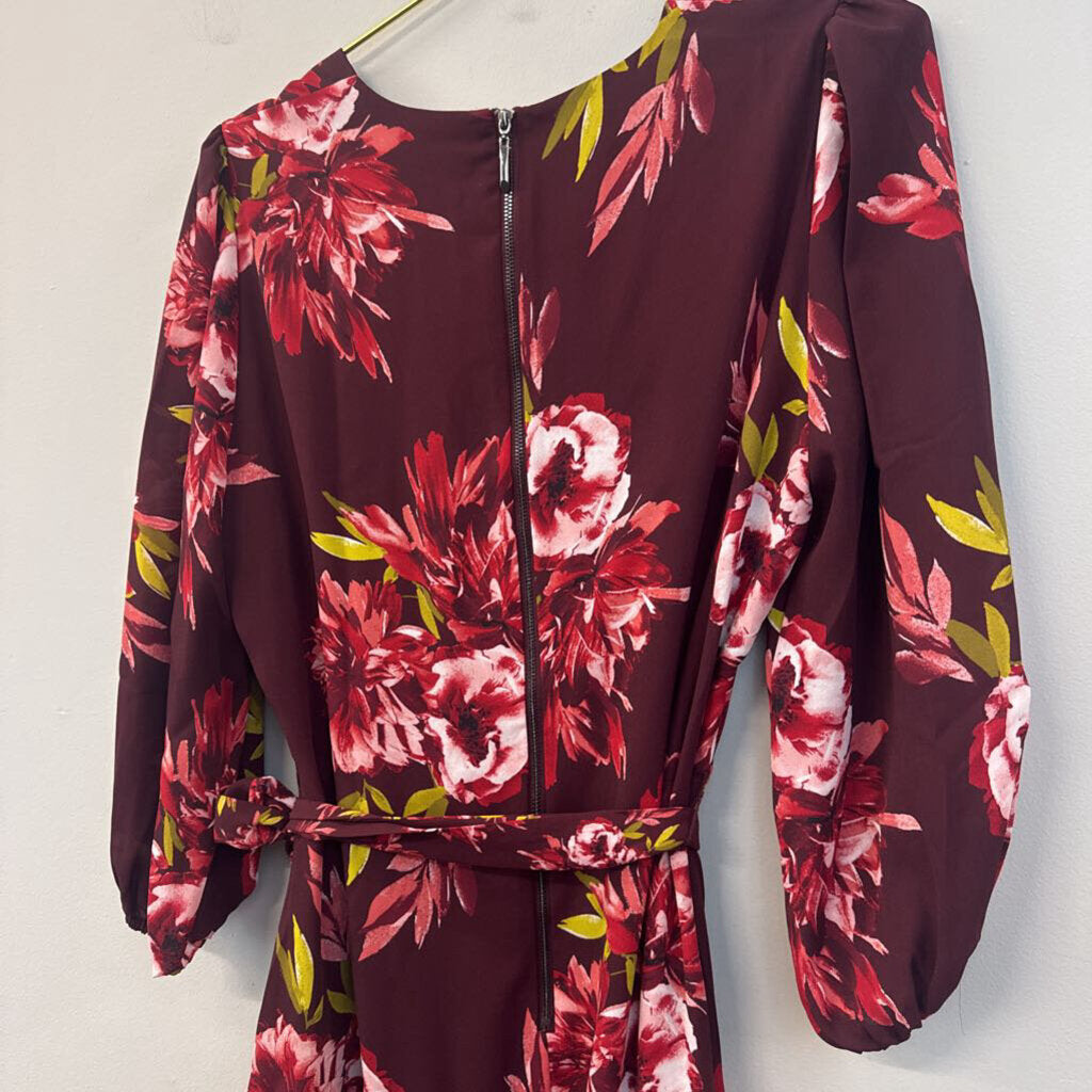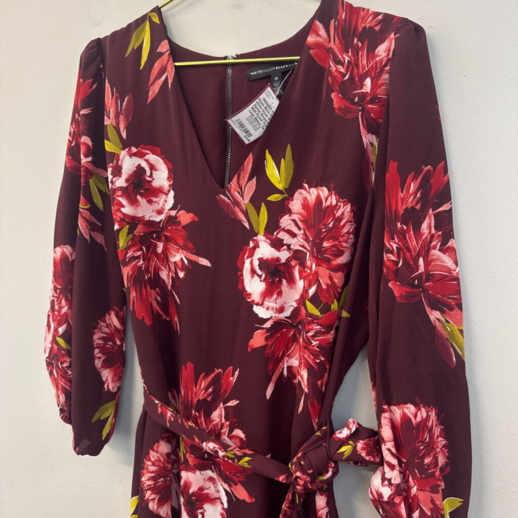 White House Black Market Burgundy/ Multi Flower Print Long Sleeve Tie Waist Dress 10