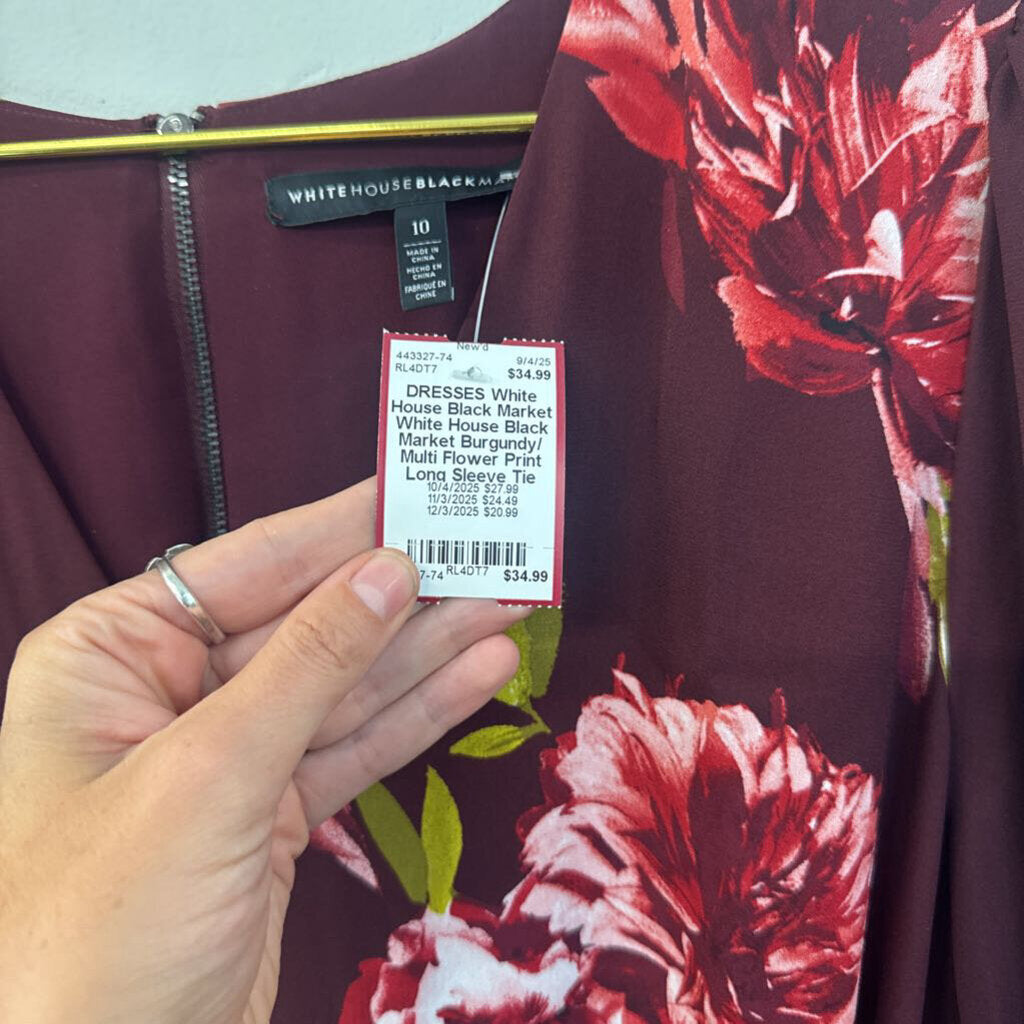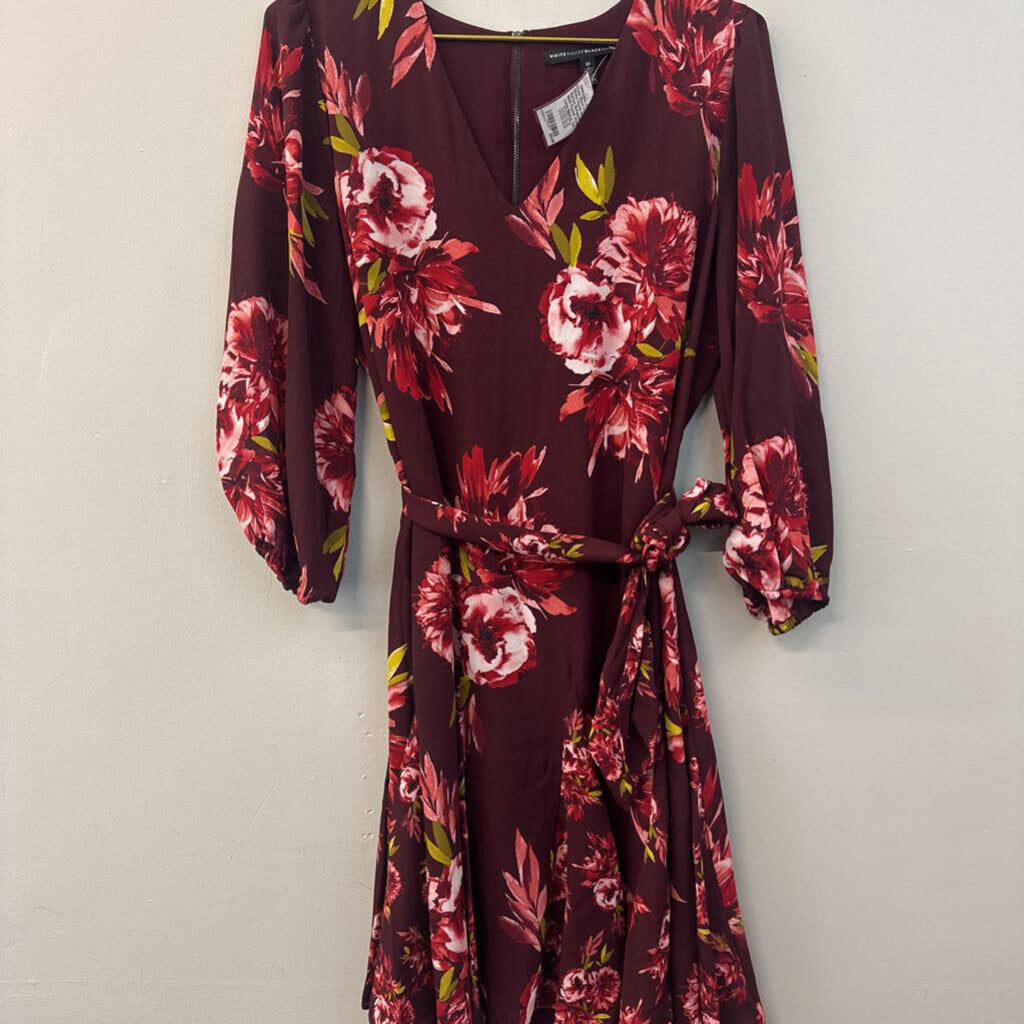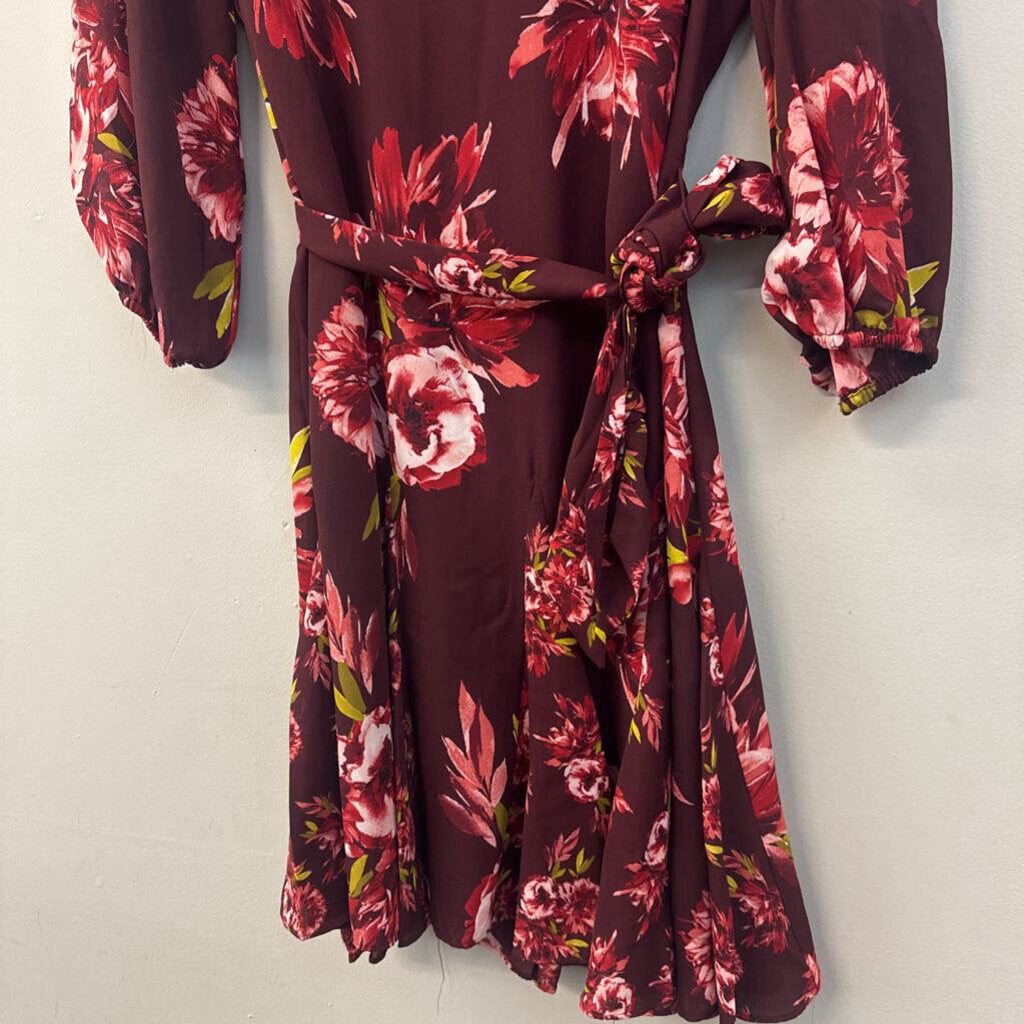 White House Black Market Burgundy/ Multi Flower Print Long Sleeve Tie Waist Dress 10