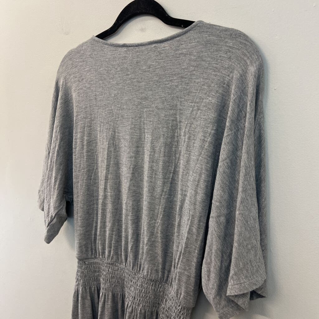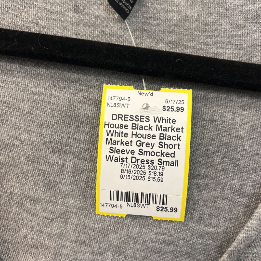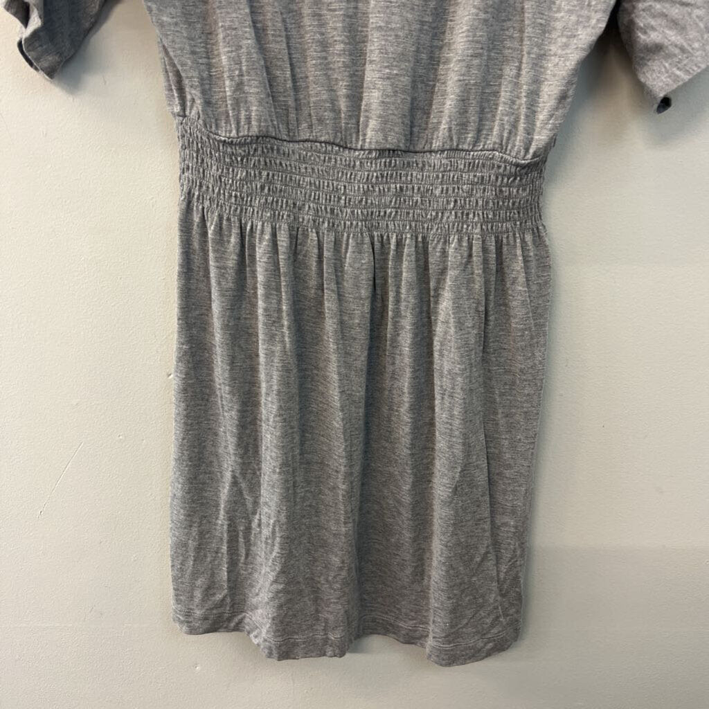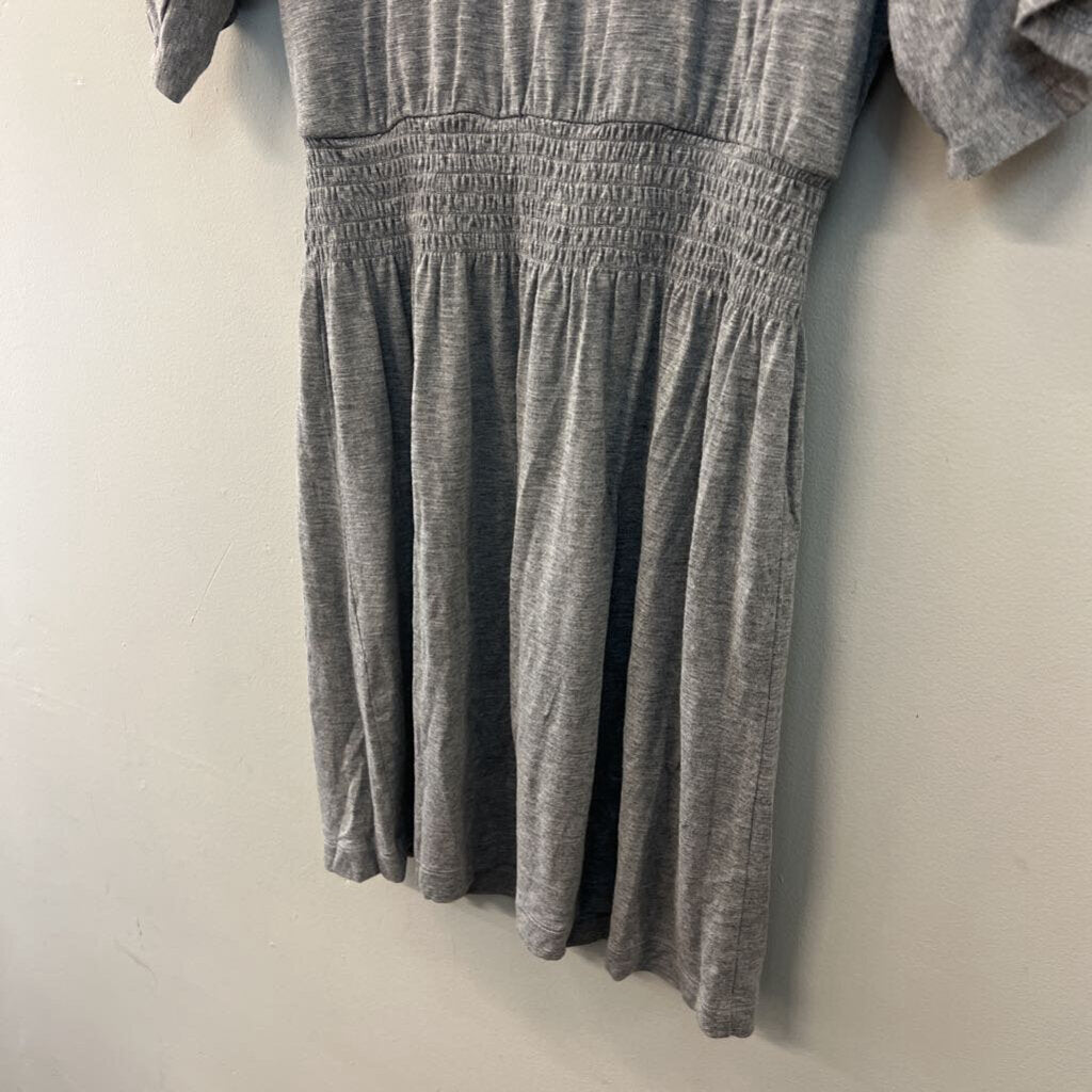 White House Black Market Grey Short Sleeve Smocked Waist Dress Small
