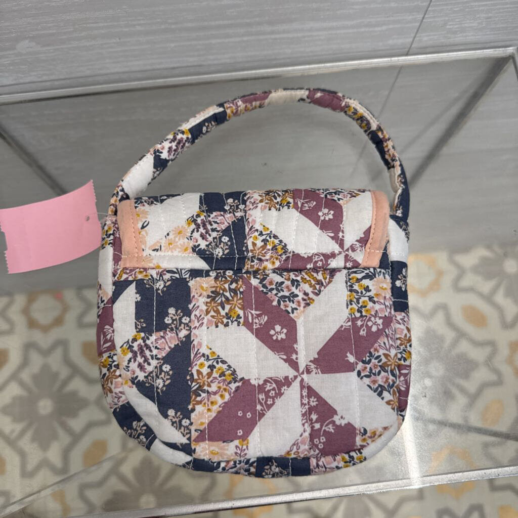 White/ Pink/ Blue Quilted Print Mini Purse