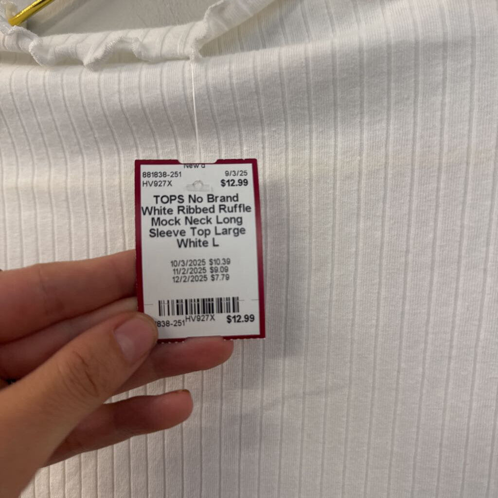 White Ribbed Ruffle Mock Neck Long Sleeve Top Large