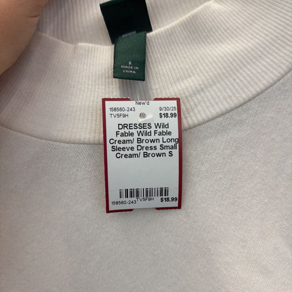 Wild Fable Cream/ Brown Long Sleeve Dress Small