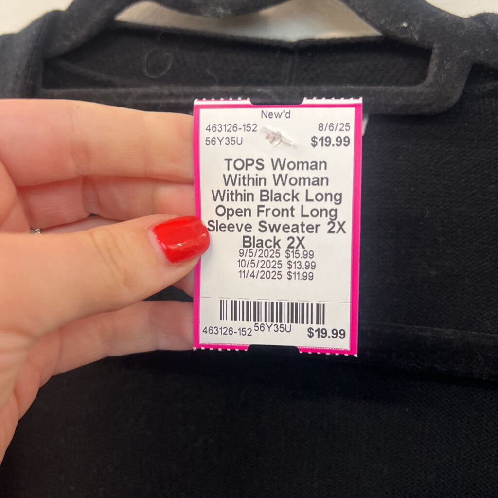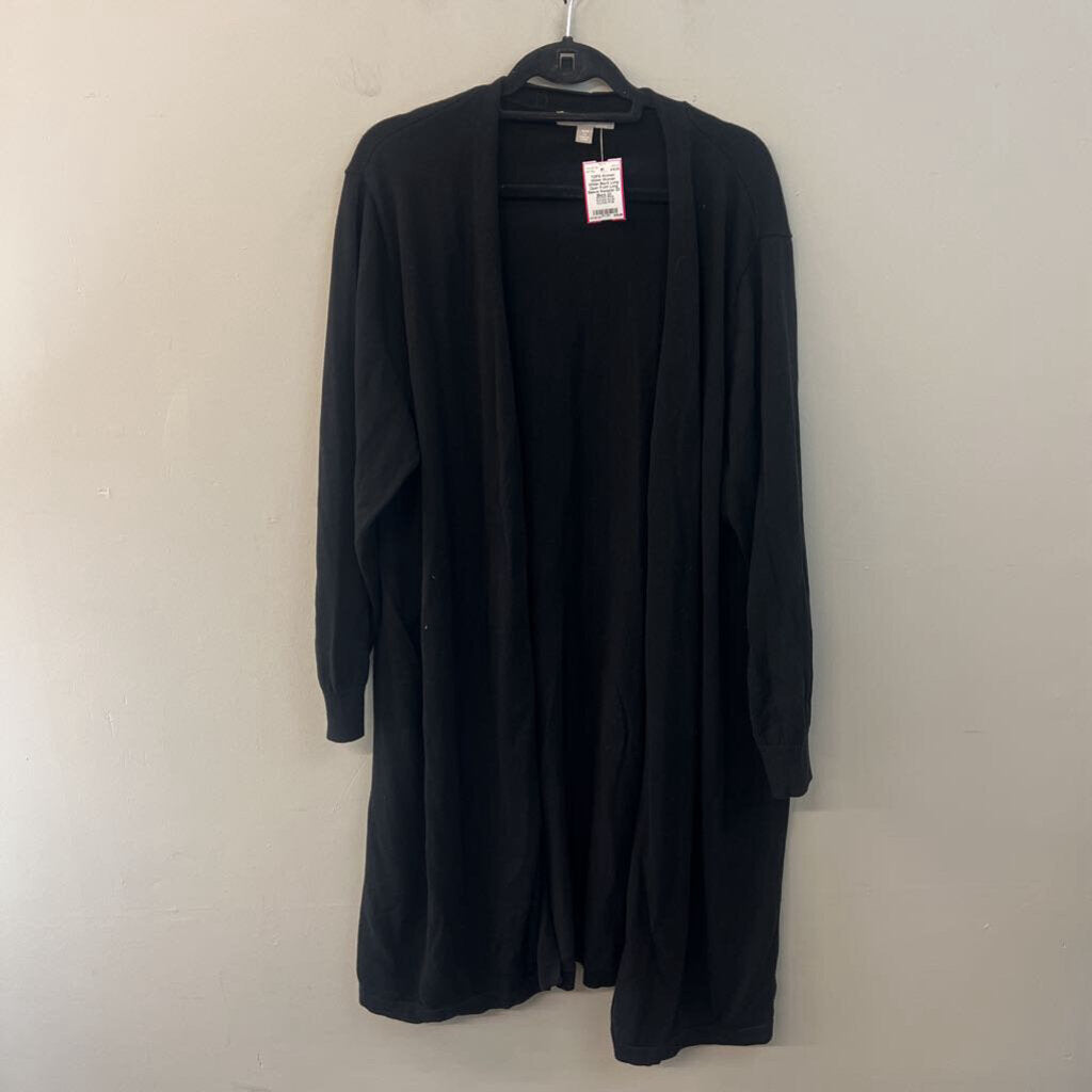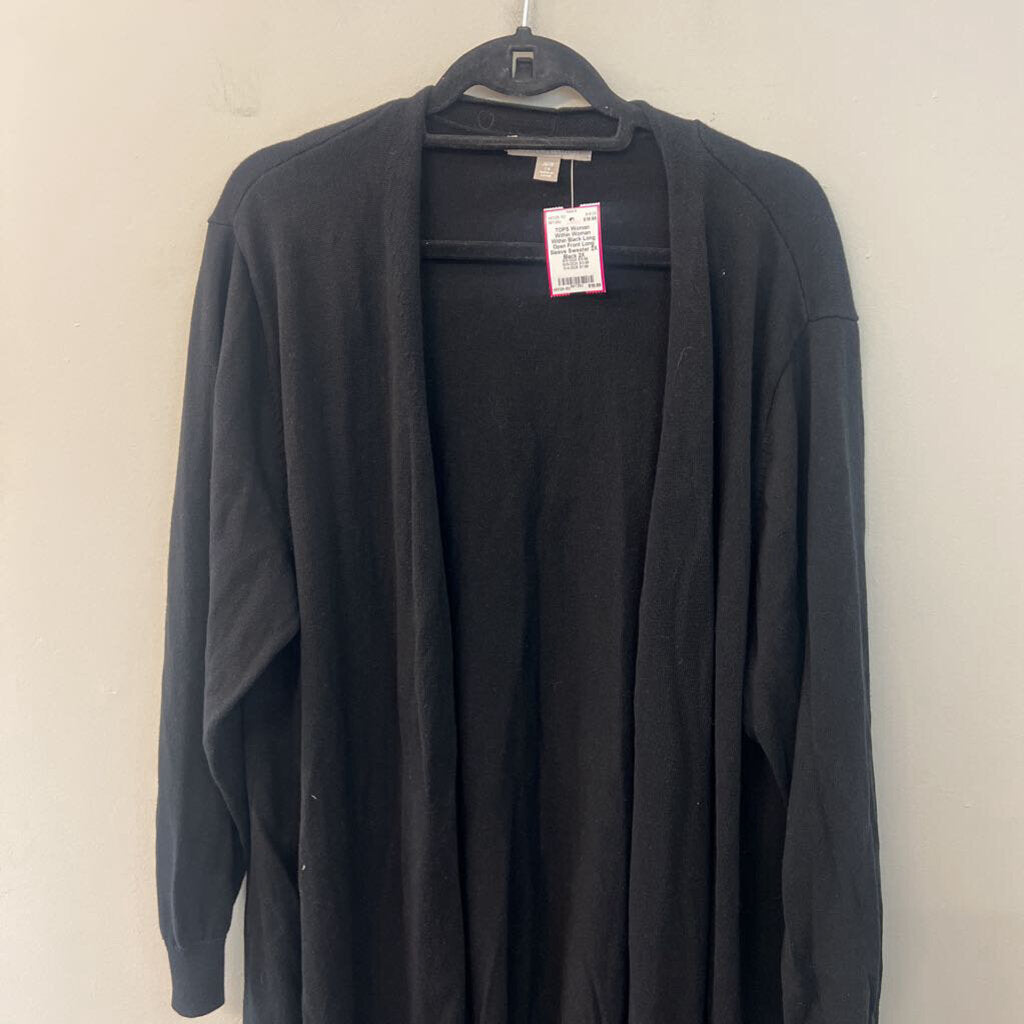 Woman Within Black Long Open Front Long Sleeve Sweater 2X