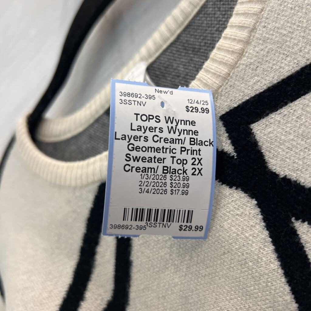 Wynne Layers Cream/ Black Geometric Print Sweater Top 2X