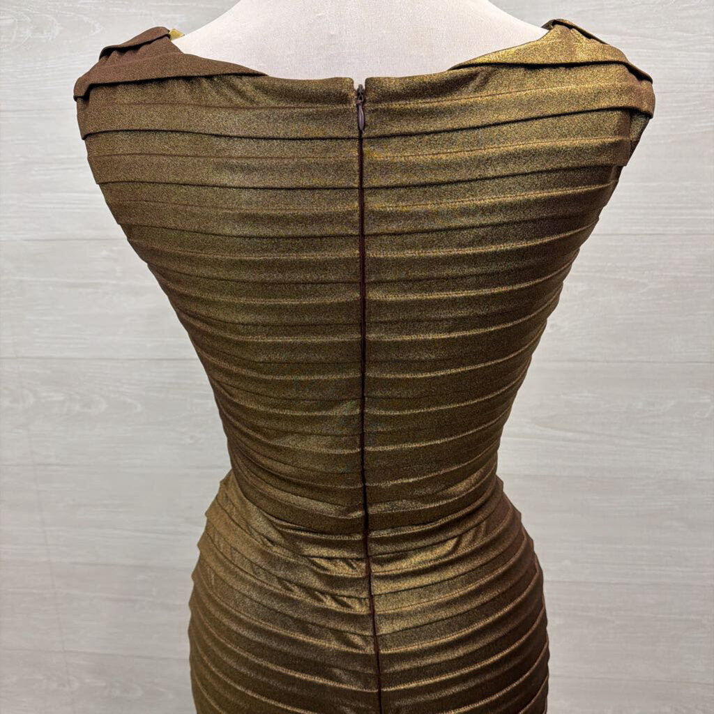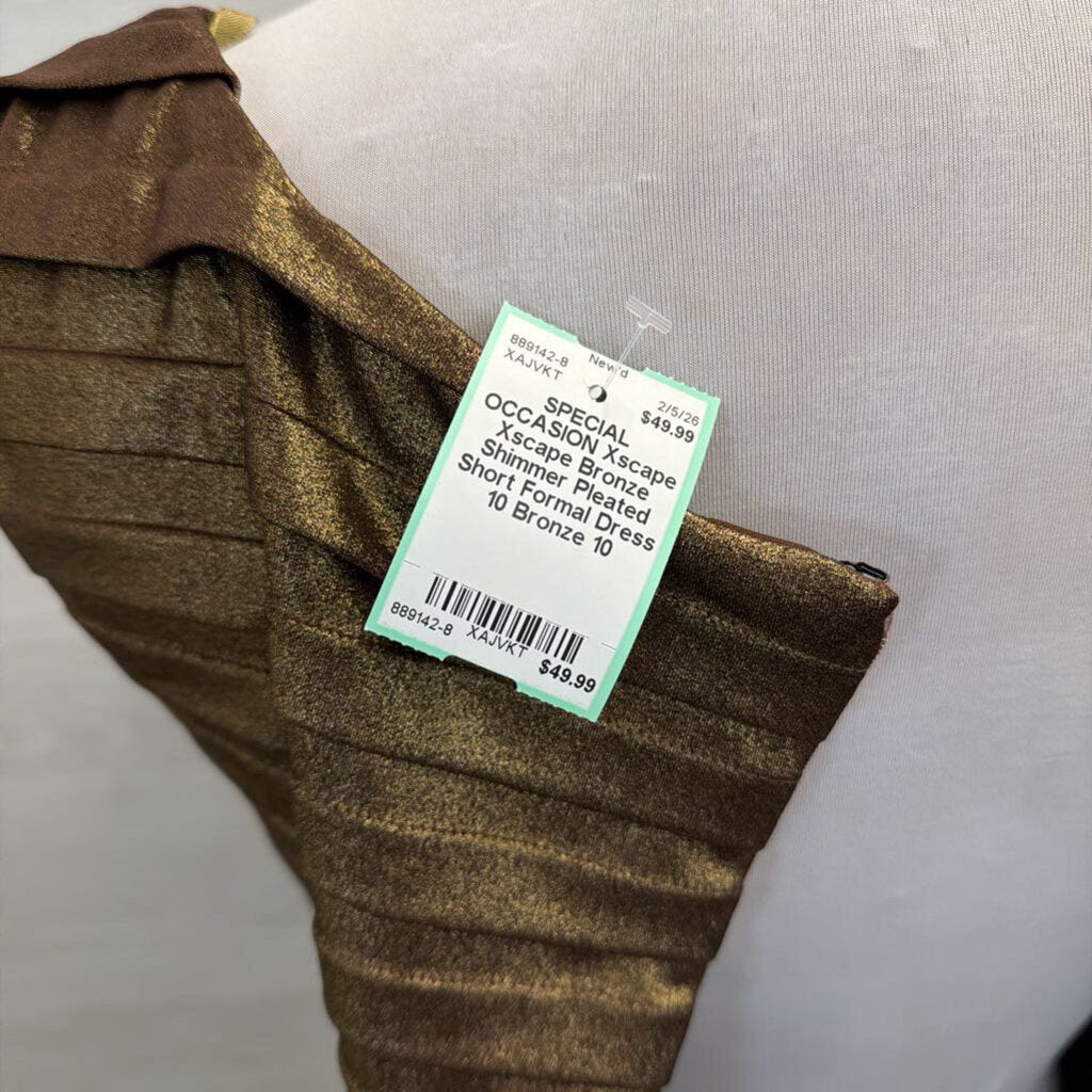 Xscape Bronze Shimmer Pleated Short Formal Dress 10