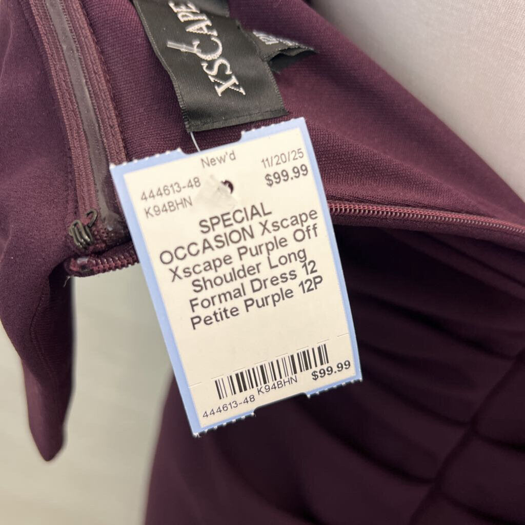 Xscape Purple Off Shoulder Long Formal Dress 12 Petite