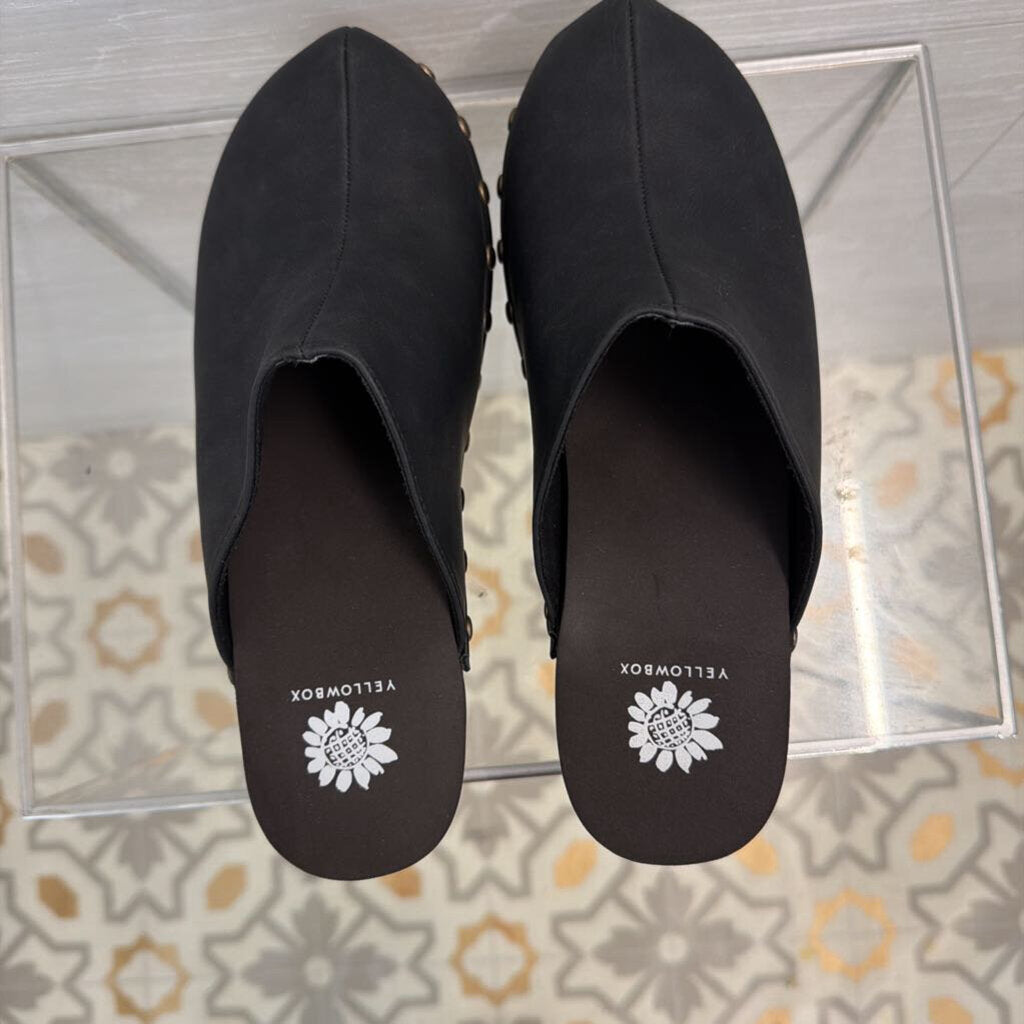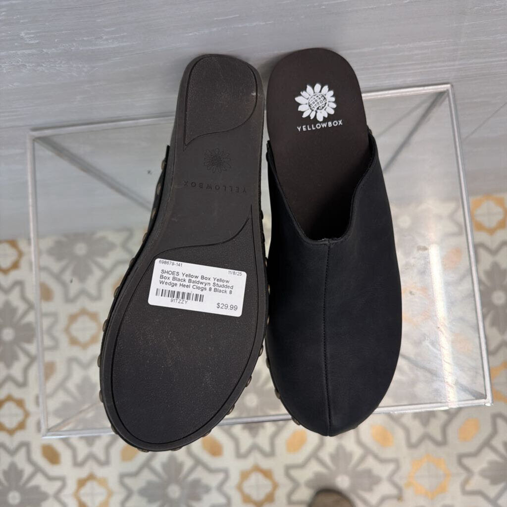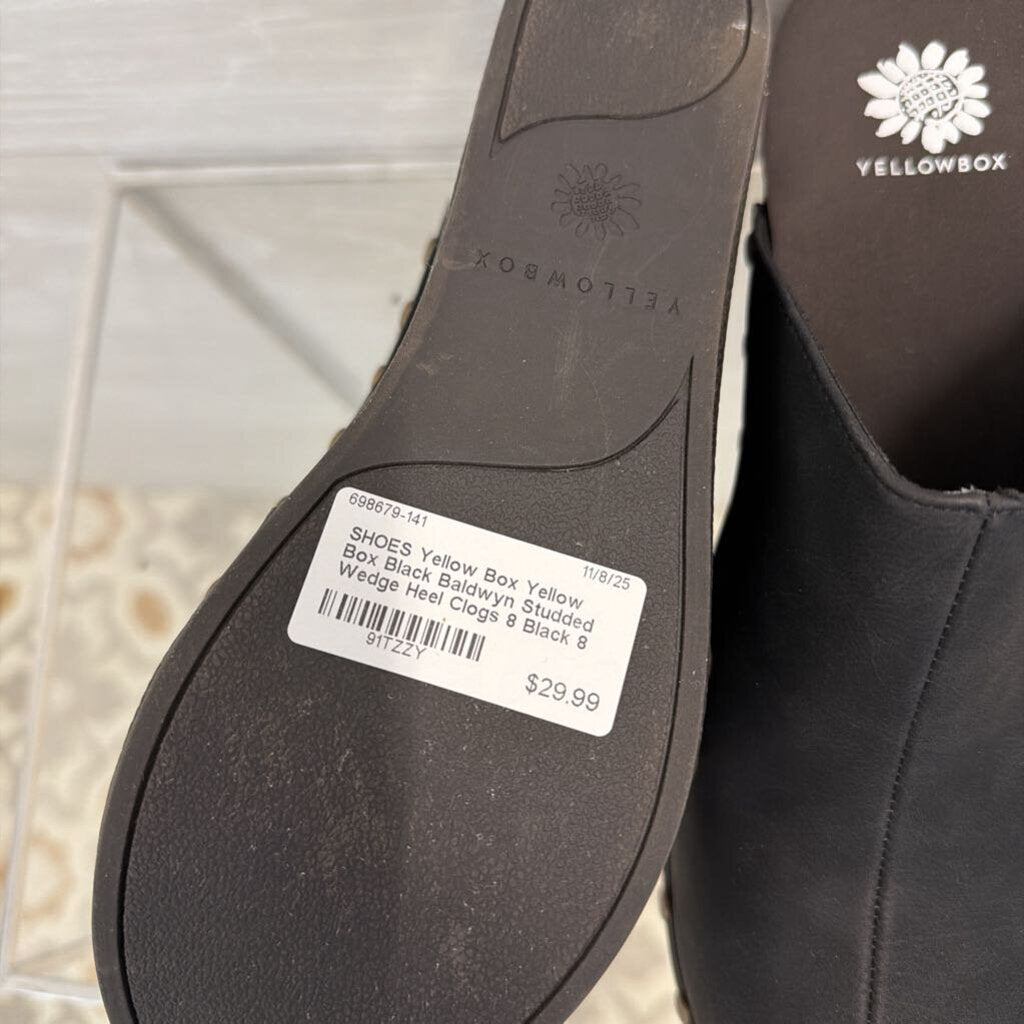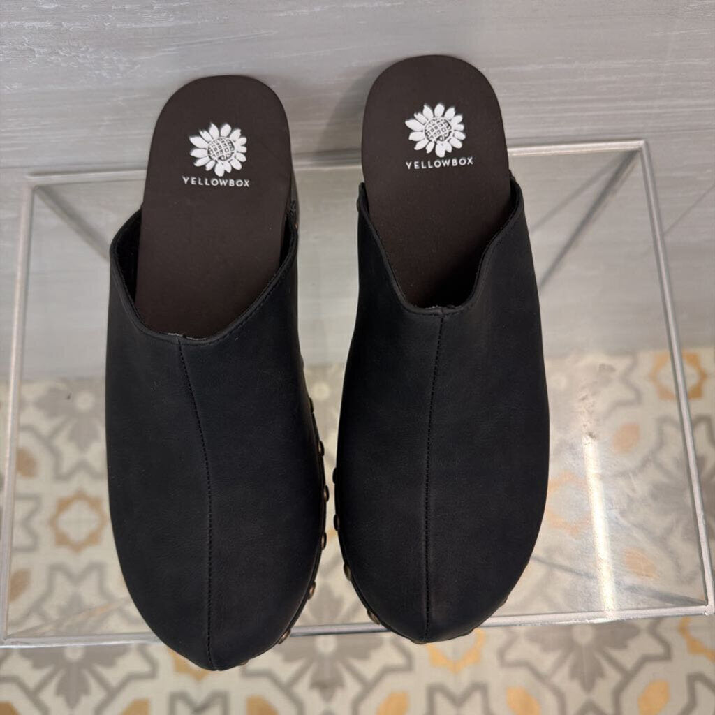 Yellow Box Black Baldwyn Studded Wedge Heel Clogs 8