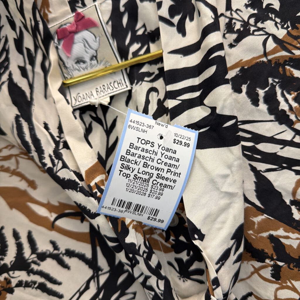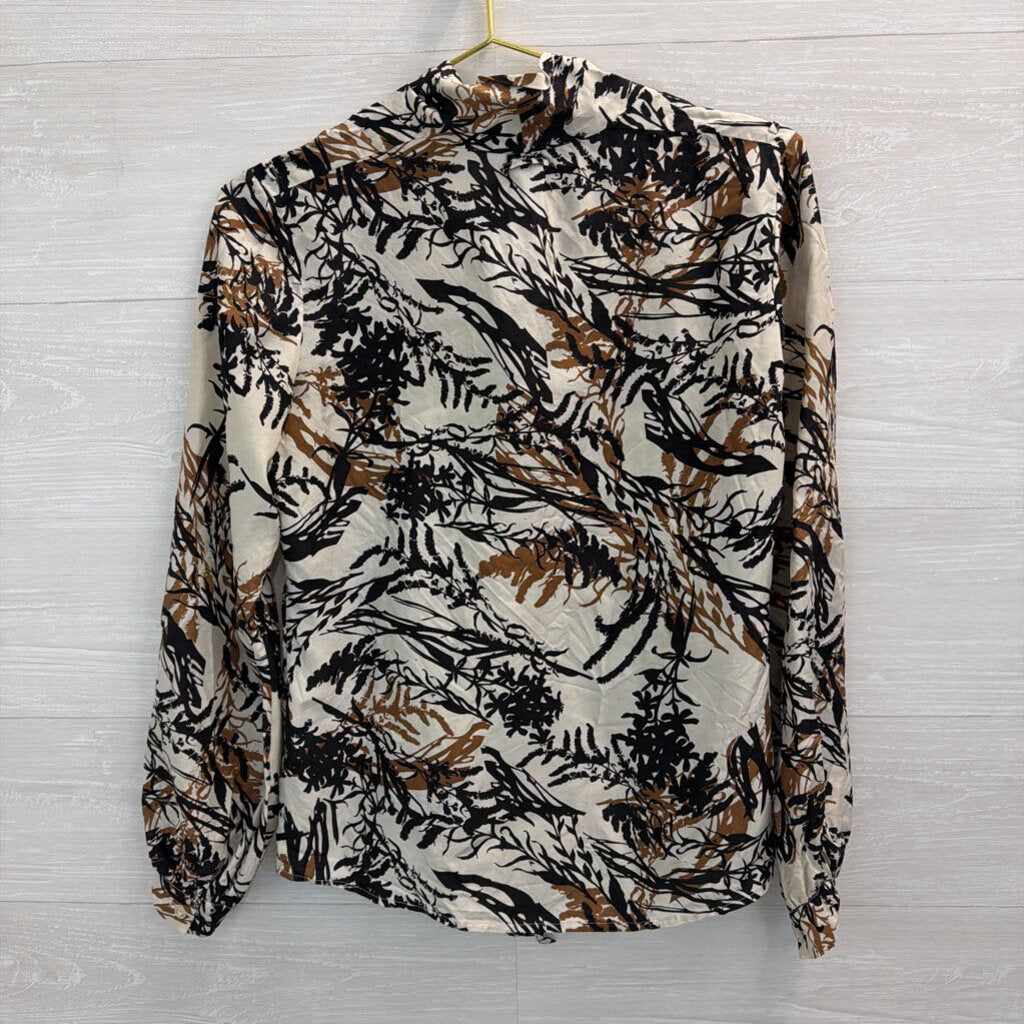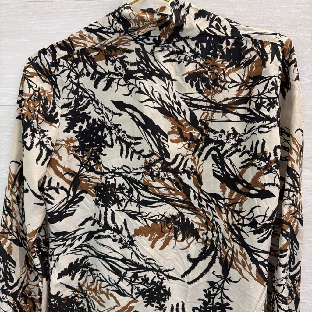 Yoana Baraschi Cream/ Black/ Brown Print Silky Long Sleeve Top Small