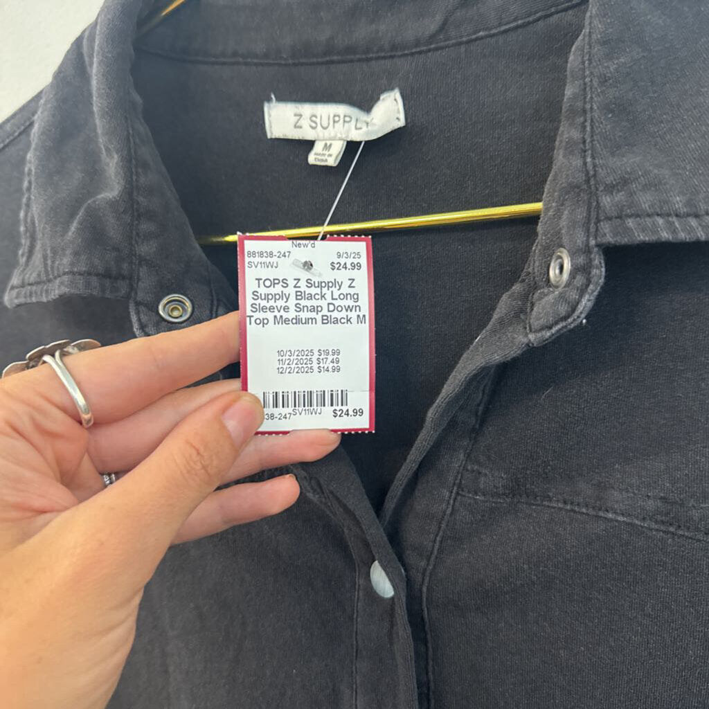 Z Supply Black Long Sleeve Snap Down Top Medium