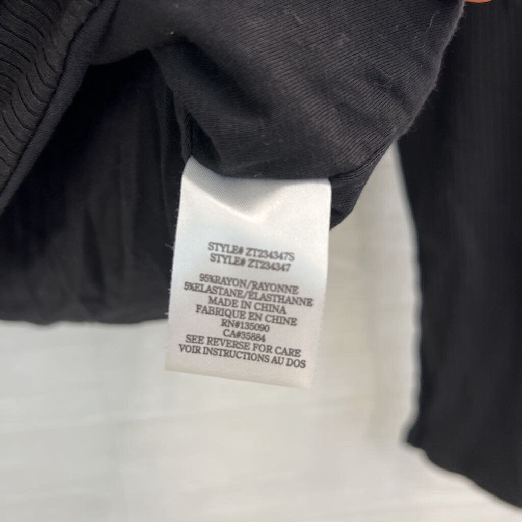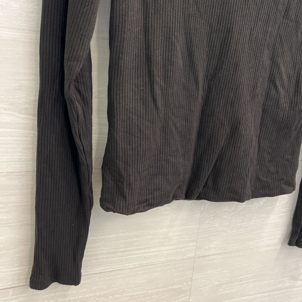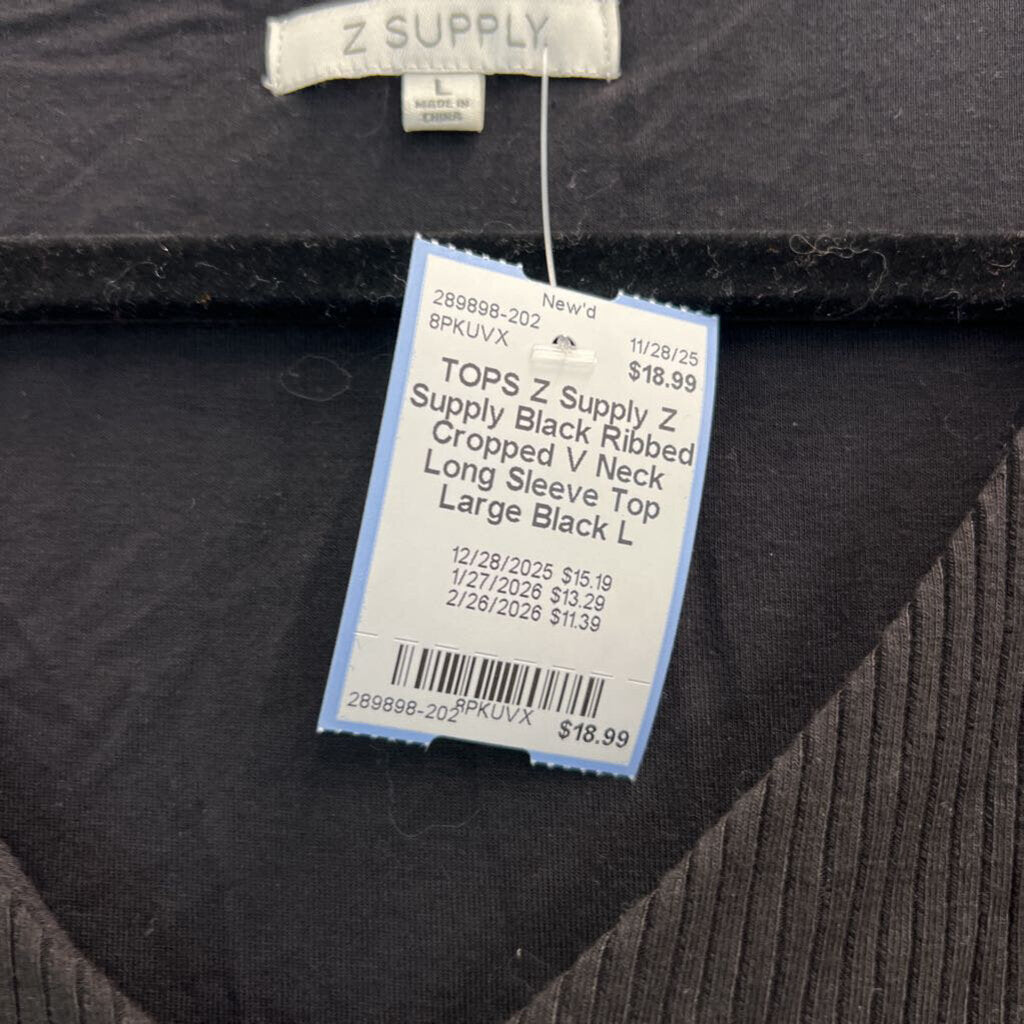 Z Supply Black Ribbed Cropped V Neck Long Sleeve Top Large