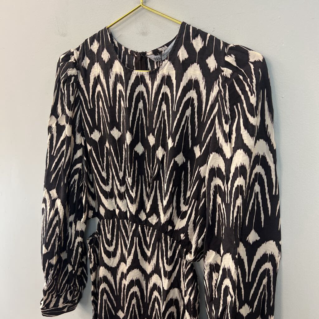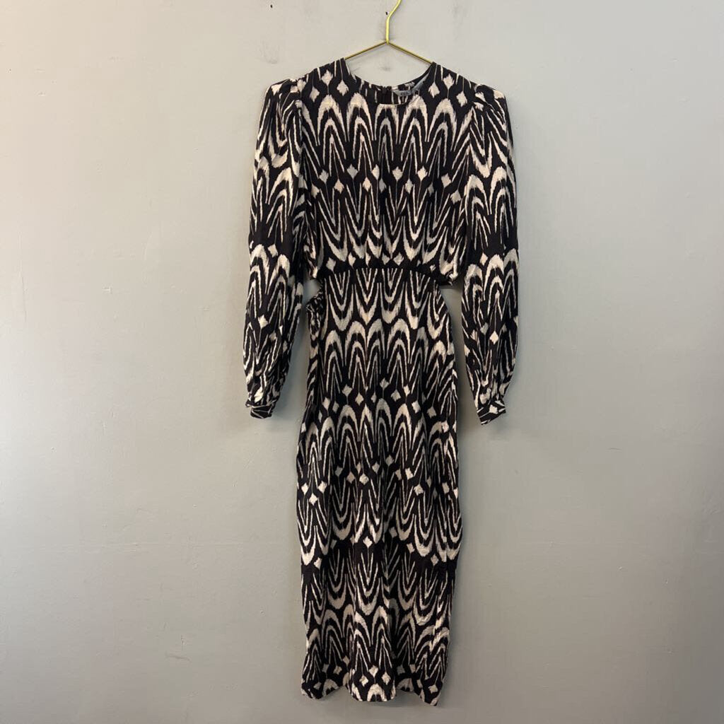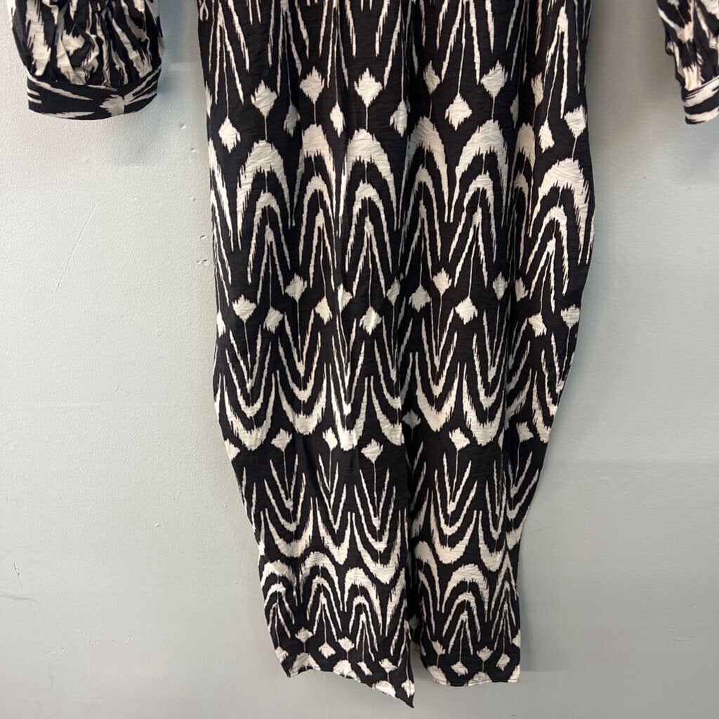 Zara Black/ Cream Print Long Sleeve Maxi Dress Small