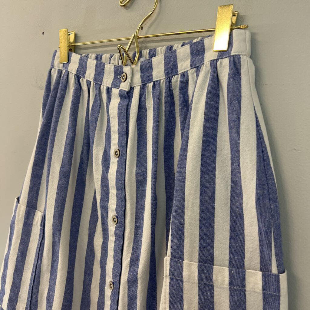 Zara Blue/ White Striped Midi Skirt Extra Small